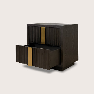 View full detailsDescription - Minimum Purchase of 2 pieces The Ula 2 Drawer black bedside table is a sure bet to add class and style...