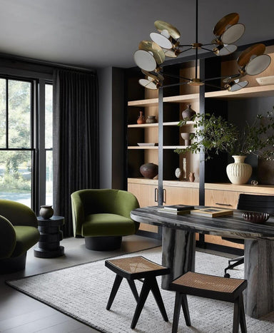 View full detailsDescription The Kelly Wearstler Melange Floating Disc Chandelier effortlessly pairs natural alabaster with sleek metal to form a streamlined geom...