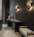 The Gong Wall Light by Esperia brings together contrasting materials and refined Italian craftsmanship to create a bold, architectural statement. Its composition pairs a large brushed brass disc with a smaller cast-brass centre, richly decorated with sculptural detailing. When illuminated, the 24V LED source casts a gentle halo of light around the form, highlighting both the texture and the warm metallic finish.
