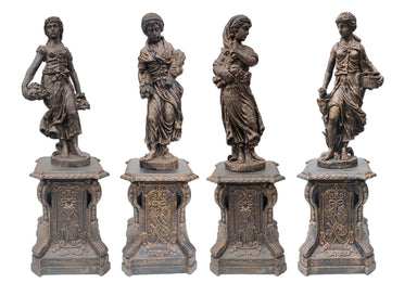 Description This Set of 4 Cast Iron Statues are made in a rural style, featuring incredible detail and sturdy, ornate pedestals. They depict the fo...