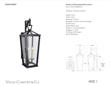 Description The Visual Comfort Darlana Small Tall Bracketed Wall Lantern plays upon negative space and is styled in an abstract and bold design. T...