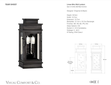 Description The Visual Comfort Linear Mini Wall Lantern by E. F. Chapman is a wall light with a traditional lantern design. It is comes with beaut...